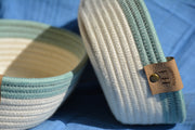 Perfect woven basket to put next to your changing station, bed or crib with your much needed essentials