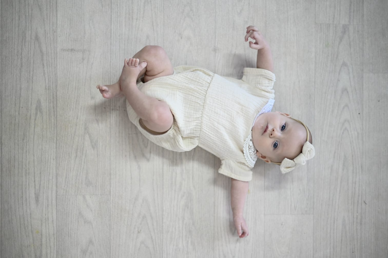 Nika - Cream girl romper and headband set