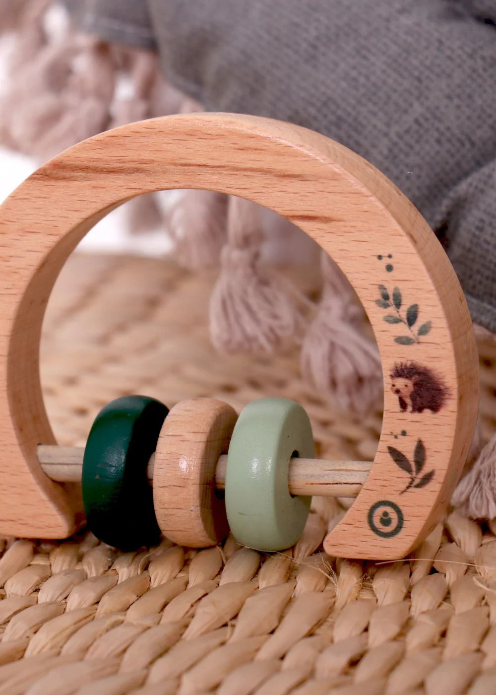 Your baby’s little hands will love this easy to grasp round wooden rattle curved wooden toy. This rattle is not only for them to shake and hold but is also safe to chew on when the teething phase starts