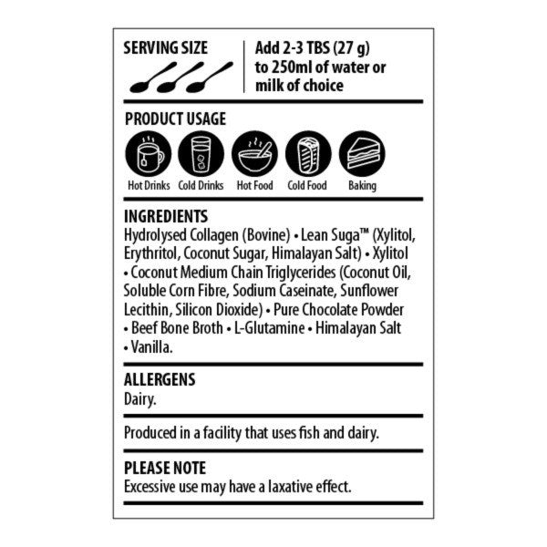 Our Chocolate Lean Shake is protein-rich meal replacement. It contains healthy fats in the form of our coconut-based MCT oil powder. The addition of L-Glutamine assists with cravings and weightloss and the shake is sweetened with our trademarked low-carb Lean SUGA and flavoured with the best quality pure chocolate powder. This shake can be enjoyed hot or cold. Replacing one meal a day with a shake is a great way to reduce calories if you are wanting to lose weight or even as a meal replacement shake if you’re busy.
