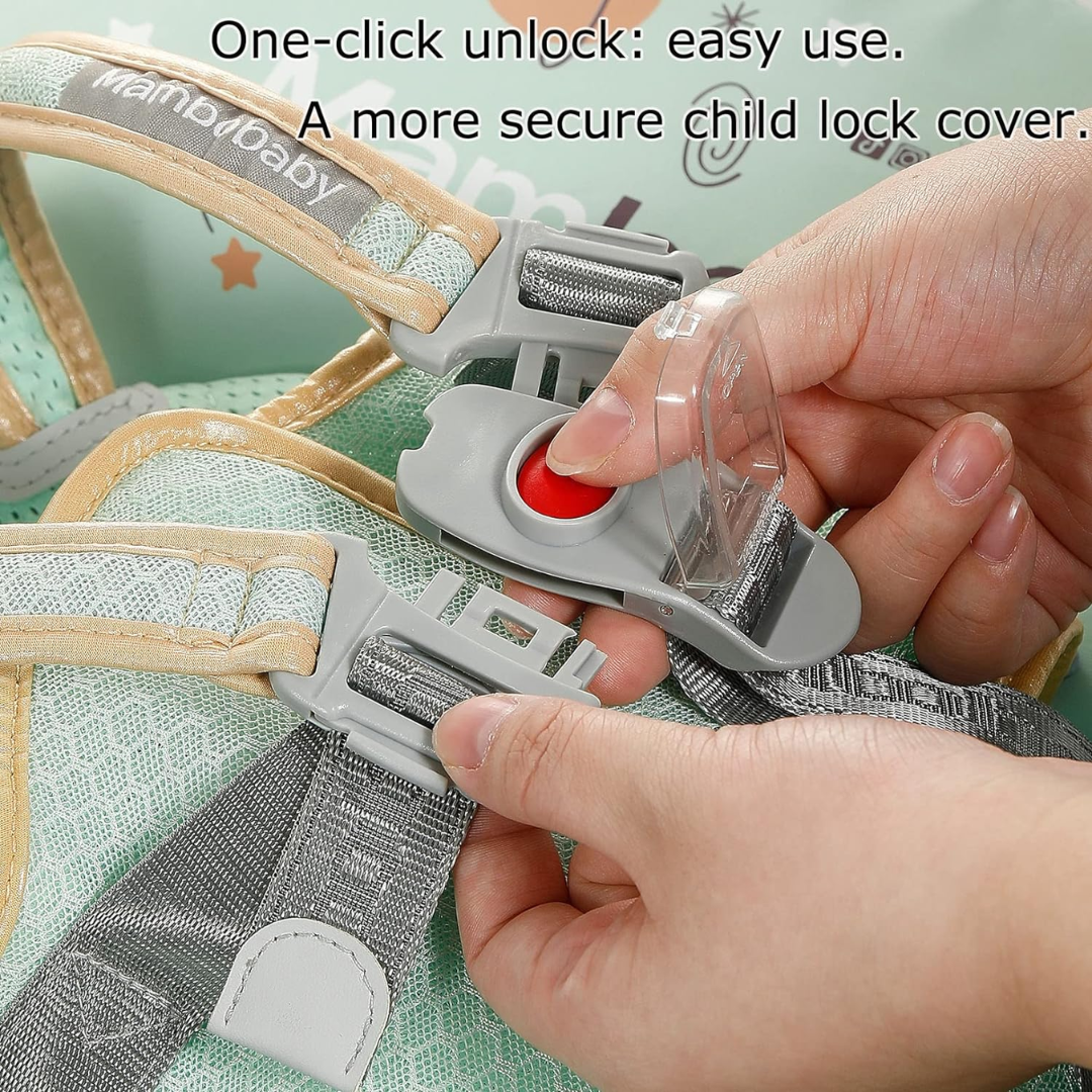 • SAFETY - NEW button lock catch and larger harness vest so the baby doesn't slip when they are paddling. Two button hole and velcro to adjust. Double safety clasp, dual protection safety. It consists of a multiple harness system which is easy to use. Thick padded adjustable crotch and chest strap. Extra security with legs support to avoid baby slipping out or flipping forward.