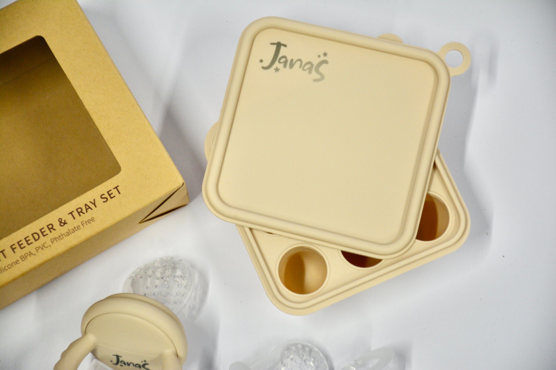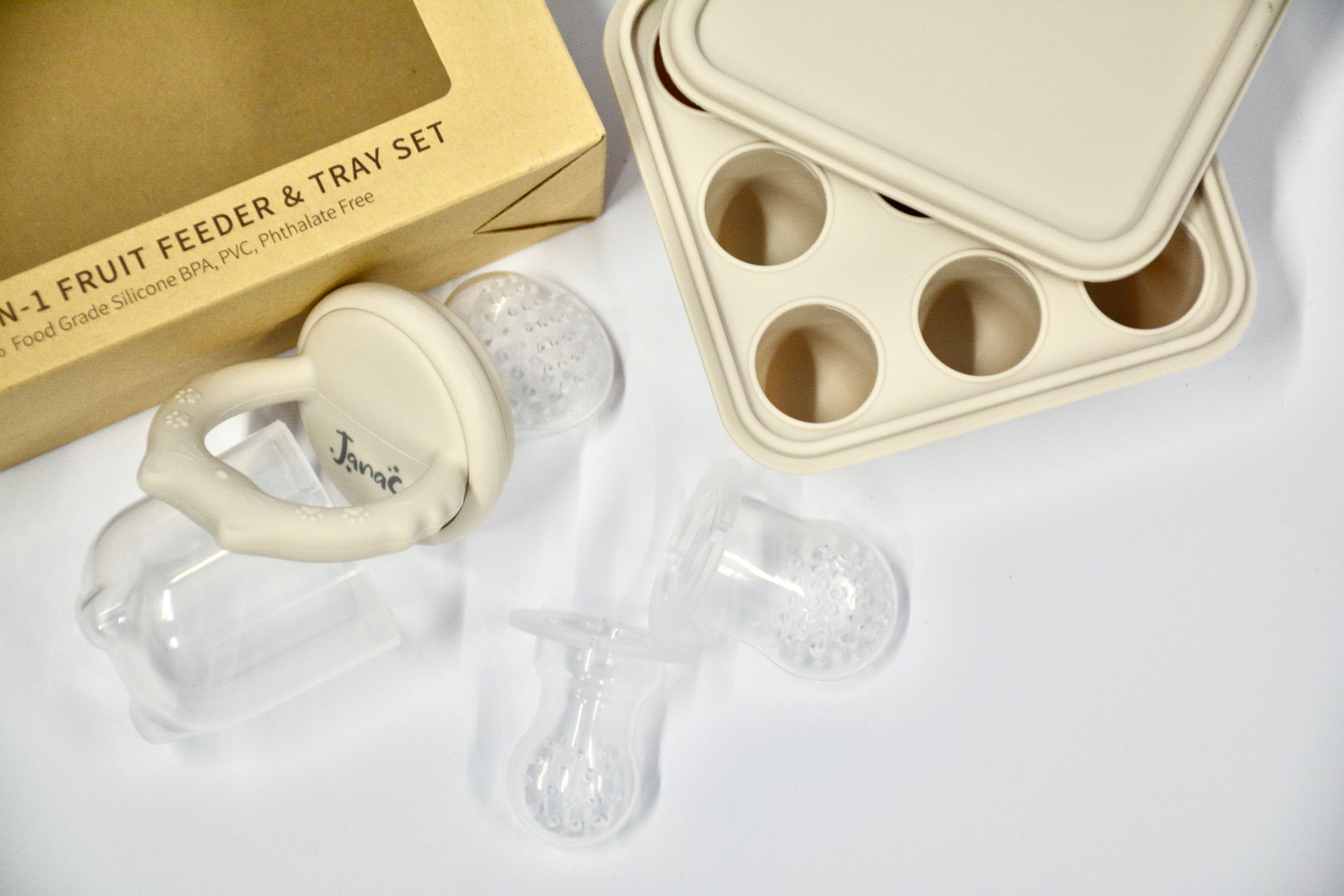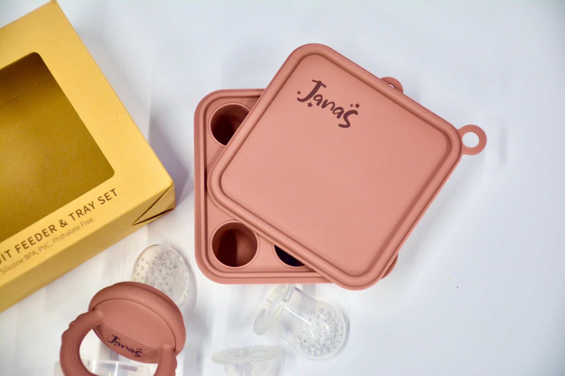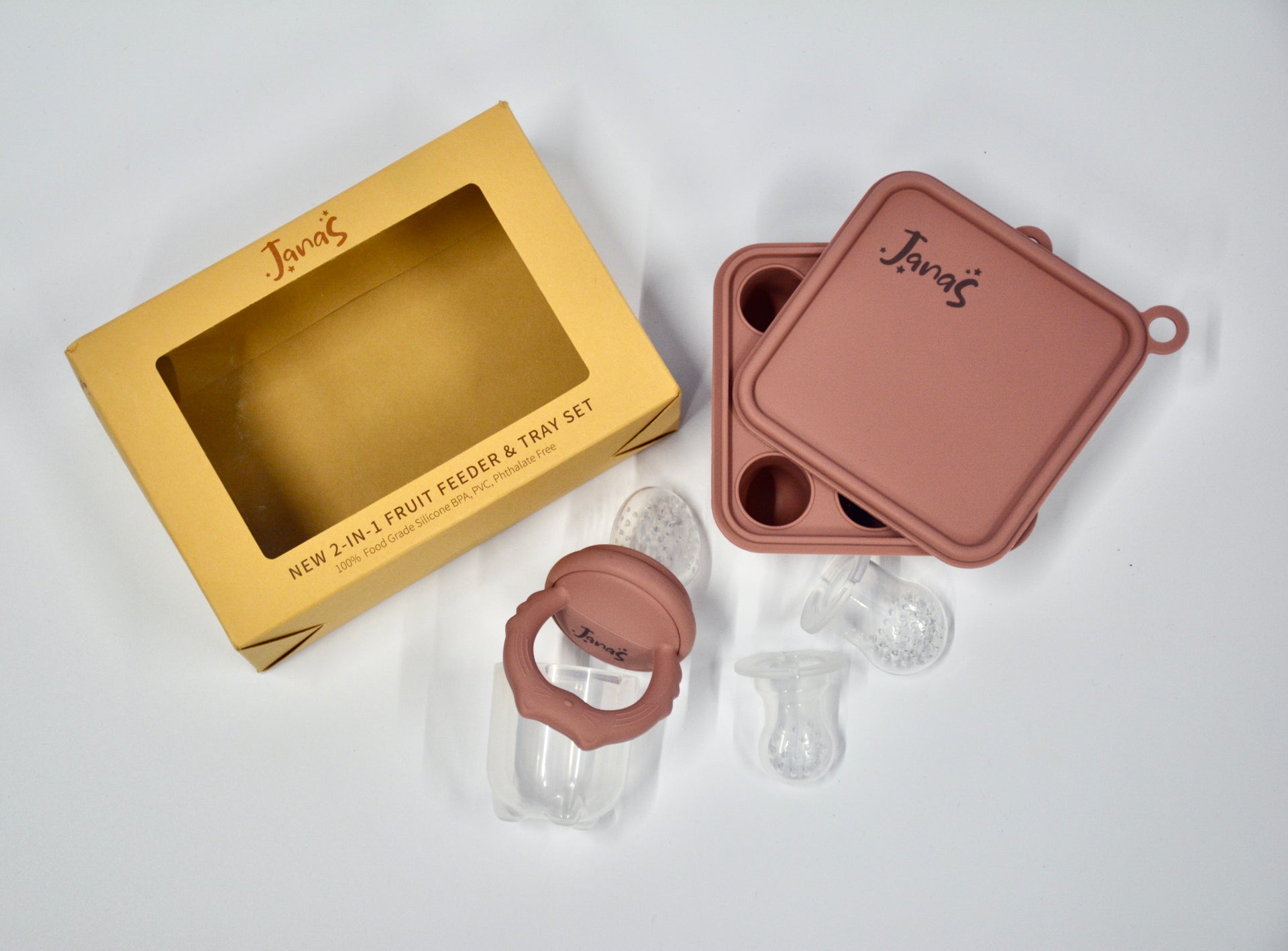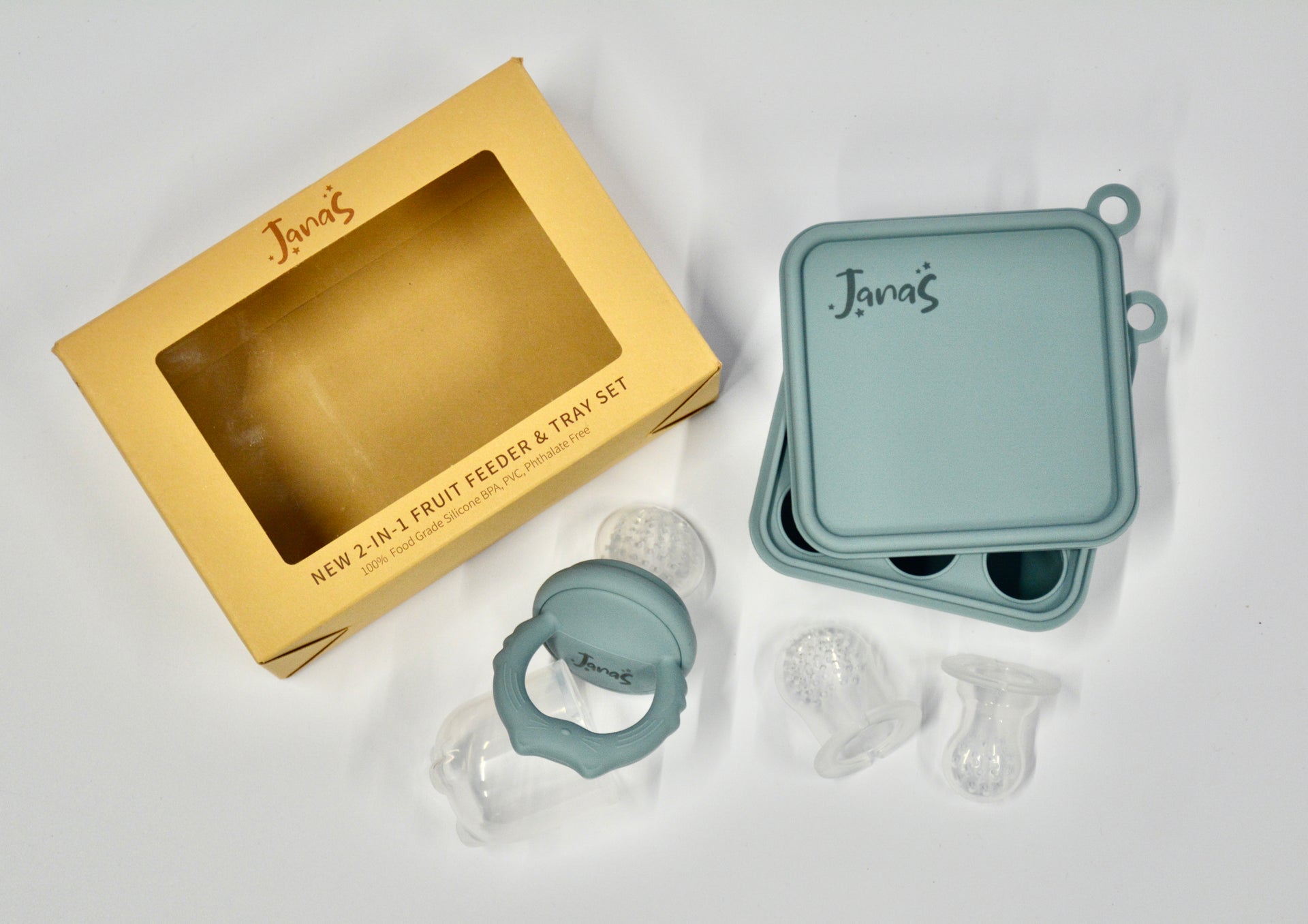 2in1 fruit feeder and tray set with extra teether heads