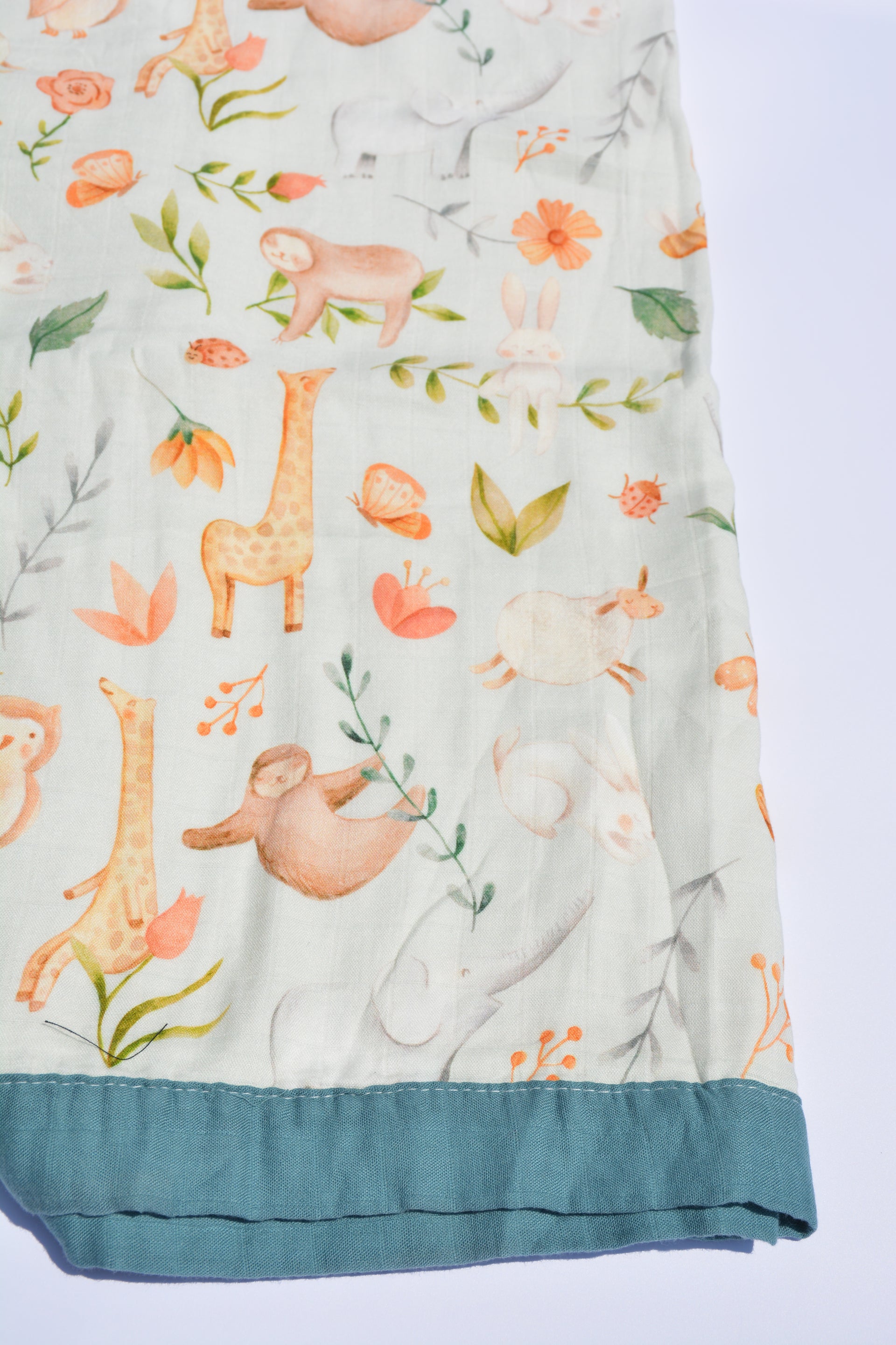 Bamboo cotton muslin blanket - 4 layers - Baby animal drawings