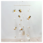 Each bee and accent piece is made from soft felt and suspended from a natural wooden hoop, allowing the elements to sway gently and capture your baby’s attention. The cheerful bee design brings a touch of nature indoors while complementing a range of nursery themes.