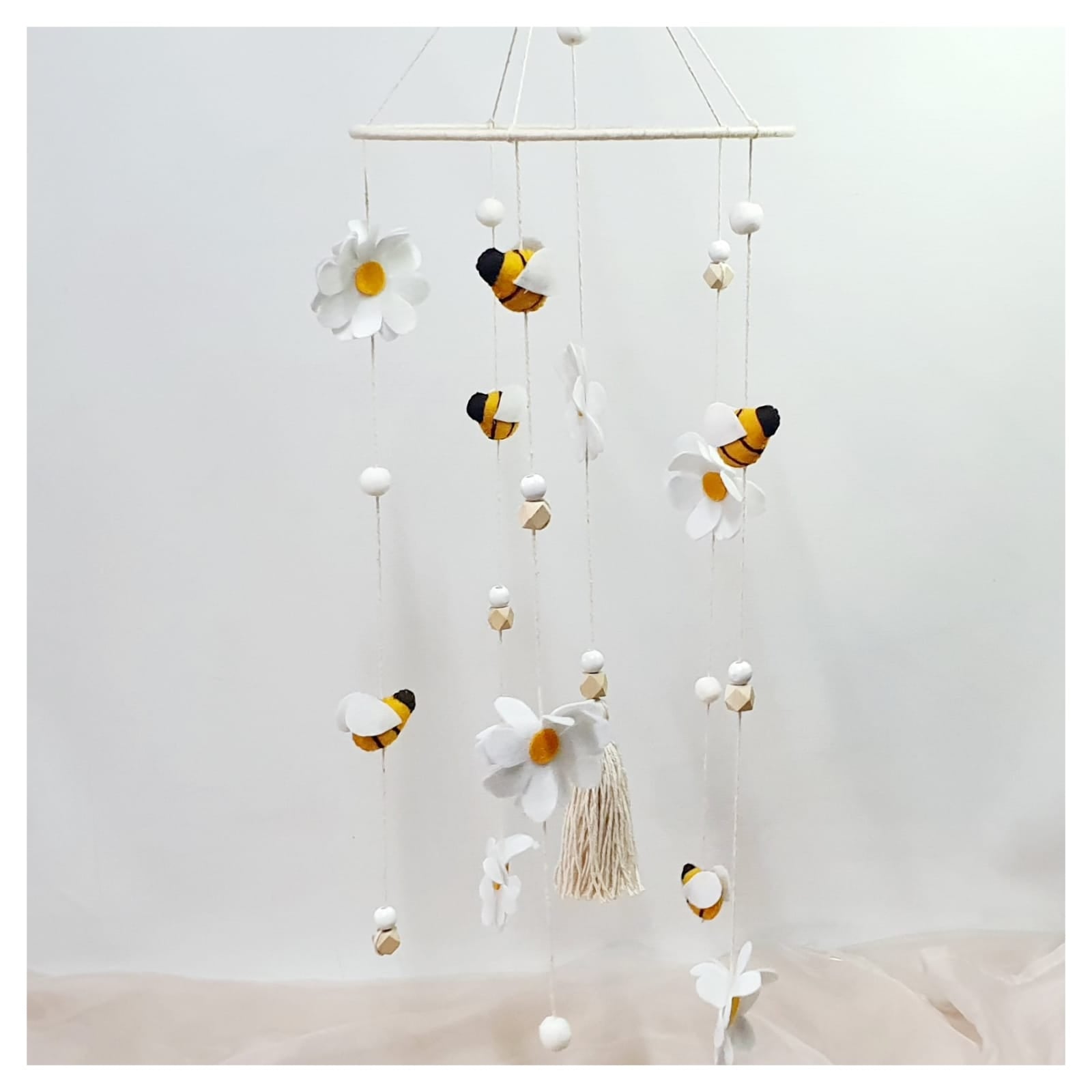 The Bee Mobile adds a whimsical and calming presence to any nursery. It’s an ideal gift for newborns and baby showers, or a delightful addition to your own child’s room. Its soft motion and engaging design help create a warm, serene environment for rest and play.