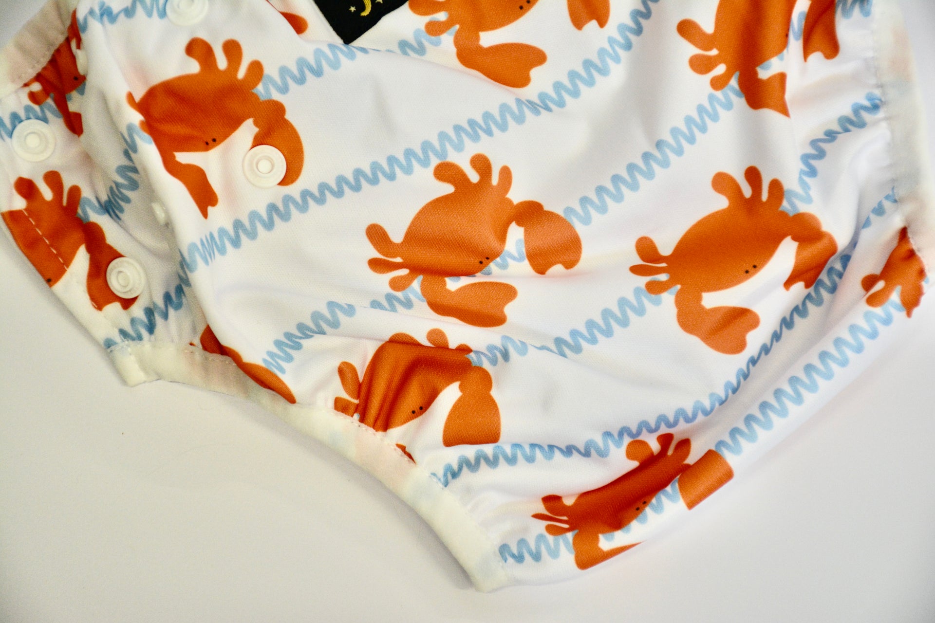 Not absorbent like your everyday nappies, they will stay light and comfortable while your little one navigates the water. Only designed to catch the solids, so only the swim diaper needs to be worn while in the water.