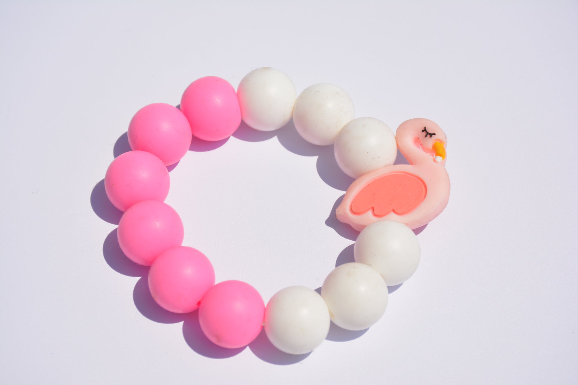 The soft, flexible beads provide gentle relief for sore gums, while the fun character bead adds a playful touch that encourages grip and sensory exploration. Lightweight and easy for tiny hands to hold, it’s perfect for teething comfort on the go.